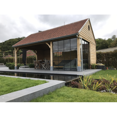Categorie Schrijnwerkerij - Houtskeletbouw - Afwerkingen - Carports - Interieur - Maatwerk - Keuken - Veranda's - Poorten - maatkasten - trappen - Ingebouwde kasten - Houtconstructies - Poolhouses - Terrasoverkappingen - Tuinhuizen - Gevelbekleding - Eiken balken - Caféinrichting - Gevelbekleding in hout - Houten bijgebouwen - Eiken bijgebouwen - Timmerwerken